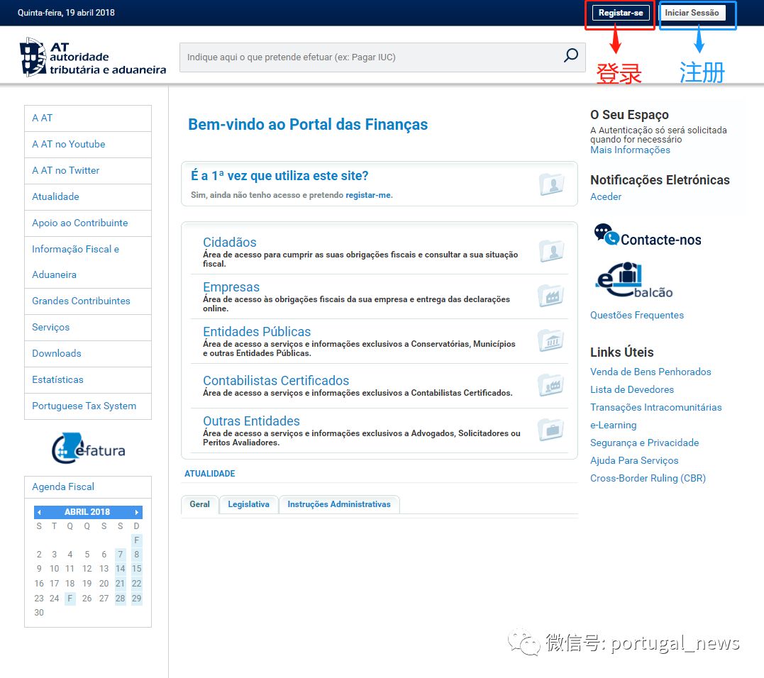葡萄牙税务局网站https://www.portaldasfinancas.gov.pt